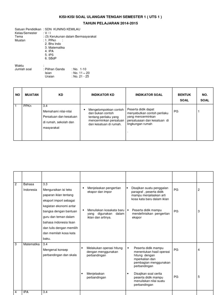Kisi Kisi Soal Uh Pts Pas Kelas 5 Sd Mi Semester 2 K13 Revisi 2017 Kolom Edukasi from 1.bp.blogspot.com Demikianlah pembahasan hari ini tentang unduh download contoh soal uts (ujian tengah semester) dan un (ujian nasional) bahasa indonesia kelas 5 semester 1 dan semester 2 kurikulum 2013 lengkap dengan. 6 nov 2019 kisi kisi soal penilaian akhir semester 1 bahasa indonesia kelas xii sma ma mata pelajaran bahasa indonesia. Kisi kisi penyusunan naskah soal ulangan akhir semester ii. Bahasa indonesia itu sendiri salah satu mata pelajaran yang di ujian nasionalkan, maka dari itu hasil dari ujian akhir semester. Pidato merupakan salah satu bentuk komunikasi yang disampaikan secara lisan untuk berbagai tujuan, tujuan berpidato yaitu untuk memberi informasi,perintah,membujuk, menghibur, dll. Terdiri dari mata pelajaran ipa. By azzahra rahmahposted on january 14, 2020. Soal bahasa indonesia kelas 5.